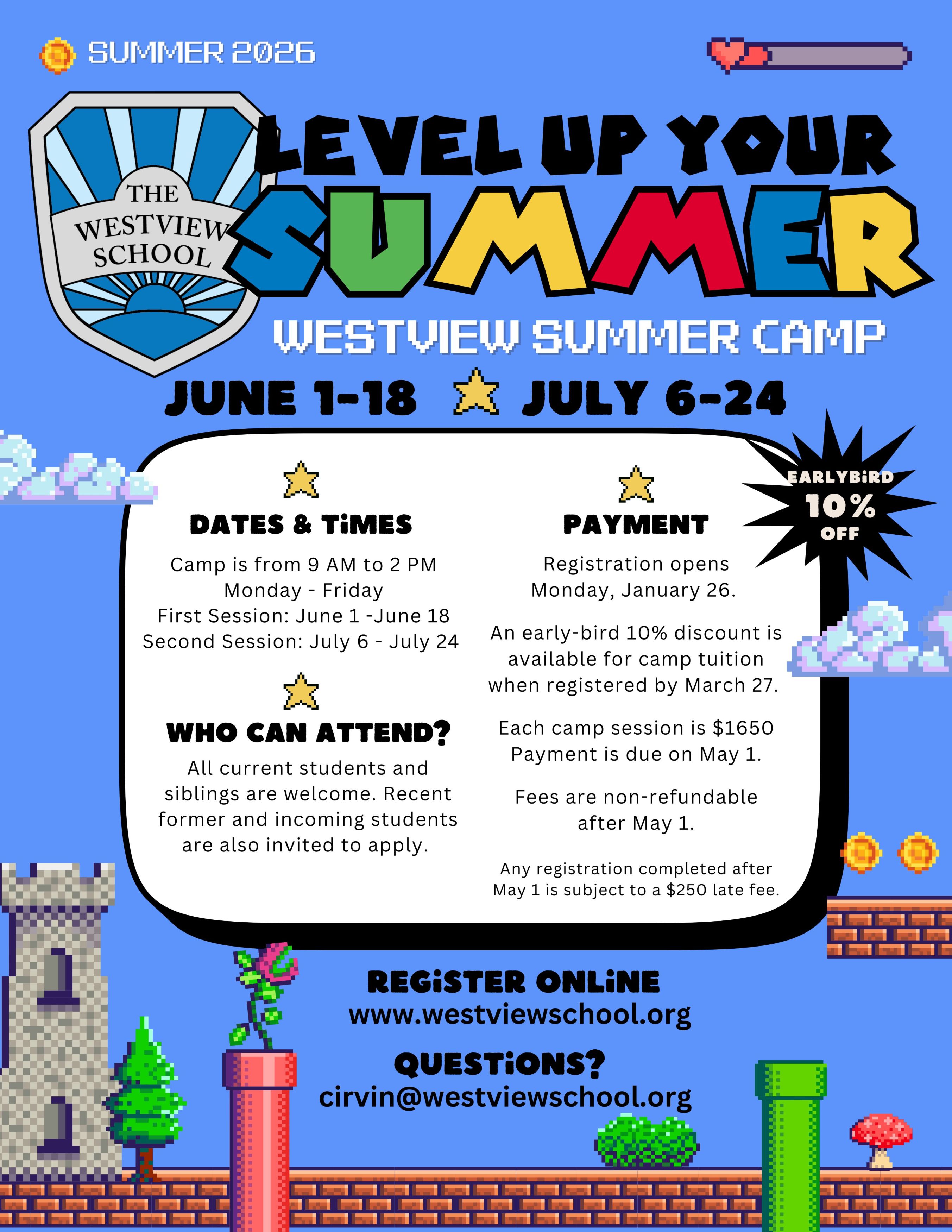 Camp will be led by Westview teachers and assistants, along with area high school and college student volunteers and former Westview students. Two three-week sessions will provide the perfect balance of skill-building and fun in an engaging learning environment.
